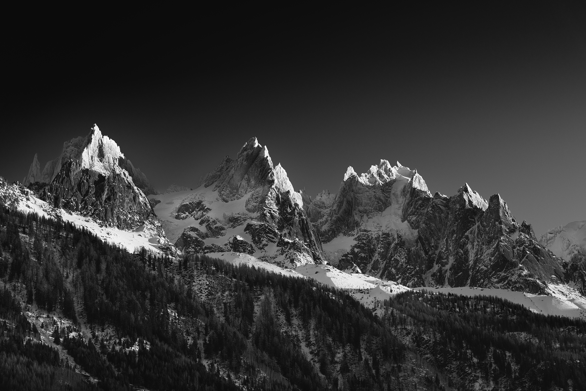 Ich werde diesen Tag als einen der schönsten, lustigsten und produktivsten Tage des Winters 2020 in Erinnerung behalten. Tagelang hatte es über den Bergen geschneit, doch an diesem Februartag klarte das Wetter langsam auf. Zuerst bin ich mit guten Freunden im Schlitten Powder gefahren, dann habe ich das Bild „AFTER THE STORM“ gemacht. Anschließend reiste ich mit Jens Wessel Normann nach Flégère mit dem klaren Plan, einen großen Backflip über das Mont-Blanc-Massiv zu machen. Als meine Freunde Après-Ski gingen, sah ich, wie sich das Licht zu etwas Magischem entwickelte. Ich beschloss sofort, neue Kamerabatterien zu besorgen, stieg ins Auto und fuhr das Chamonix-Tal hinauf, um die Aiguilles de Chamonix einzufangen, die mit Neuschnee bedeckt waren und im Sonnenuntergang badeten.
