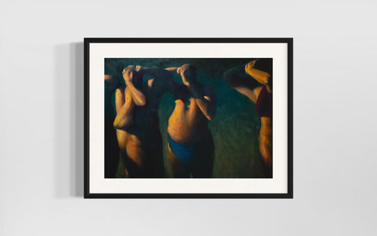- Standard: Kunstprintet rammes inn med refleksfritt artglass UV70, printet hvit kant isteden for passepartout og sort rammelist