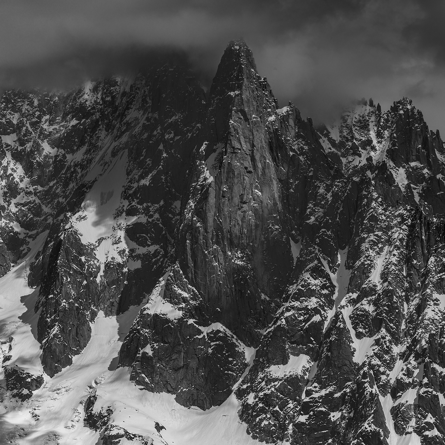 I wanted to find titles that tell their own little story. Like this one, because Petit Dru is more than a name, it is a magnet for the eye and for the imagination. This peak is so easily visible from the valley floor, and one of the main reasons for the construction of the train line up to Montenvers, where tourists have flocked for 110 years. Petit Dru is in many ways the centerpiece of Chamonix's mountains, and especially of the Aiguille Verte massif.