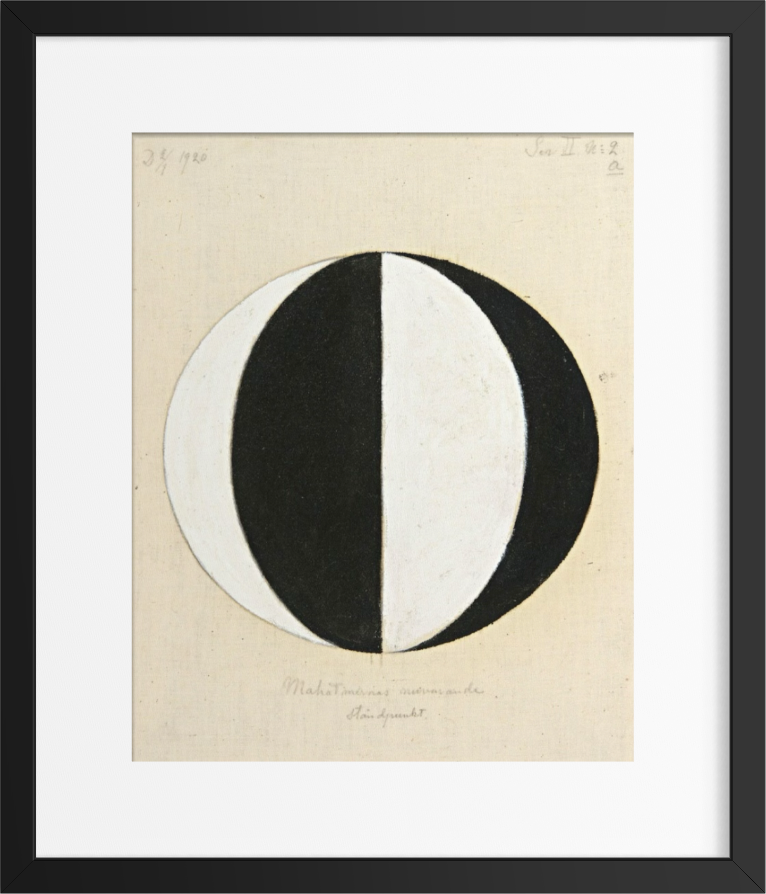 Dette verket er en del av en serie hvor Hilma af Klint utforsker åndelige perspektiver og høyere bevissthet gjennom et stramt, geometrisk formspråk. Komposisjonen er bygget opp rundt en sirkel delt i kontrasterende felt av sort og hvitt – en visuell fremstilling av balanse, dualitet og indre klarhet.