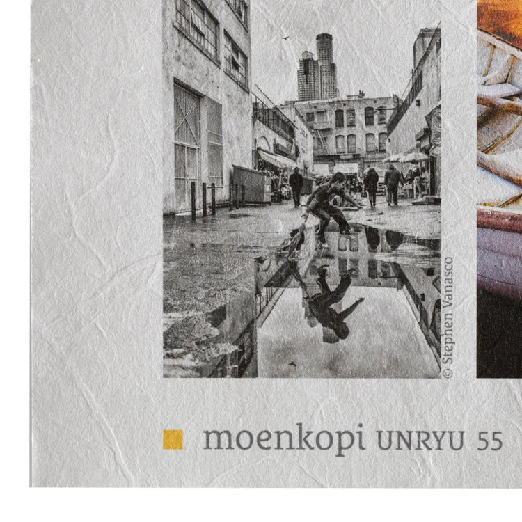 Om papiret: Klassisk japansk washi laget av morbærfiber. Lett, men svært slitesterkt papir med jevn struktur som gir klar detaljgjengivelse og lang levetid.