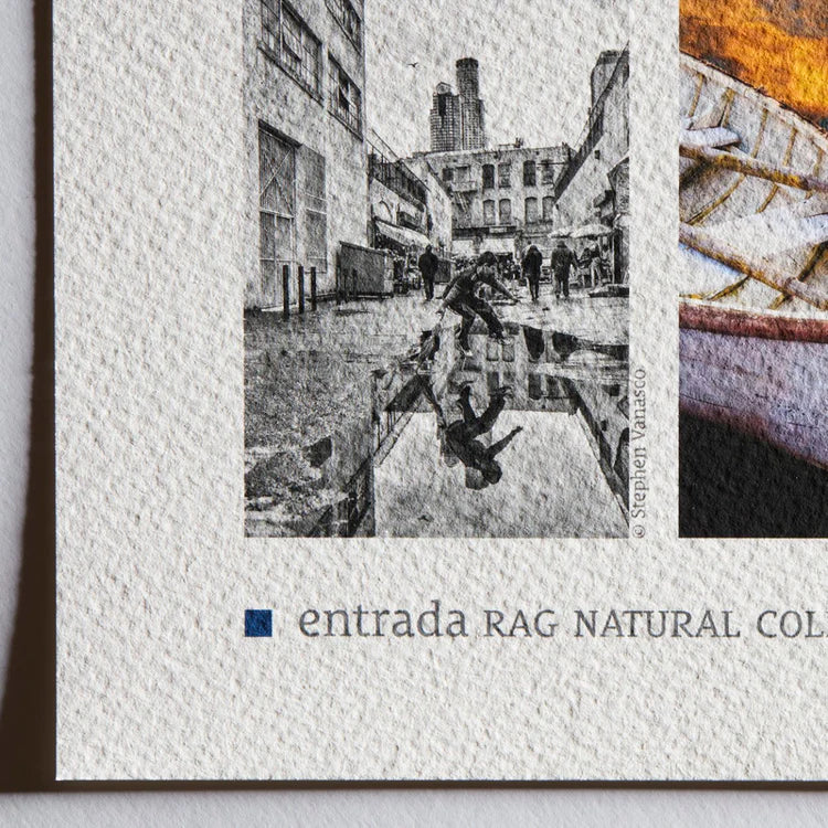 Om papiret: Bomullslerret med tydelig vevstruktur som gir malerisk preg og ekstra dybde – spesielt fint i større formater.